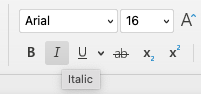 <figure><img src="https://2555990442-files.gitbook.io/~/files/v0/b/gitbook-x-prod.appspot.com/o/spaces%2F-LXQc7GhOtVRa7Lw1InO%2Fuploads%2FAUxUfQWvGgLNUfywpM8l%2FTooltip%20-%20Outlook.png?alt=media&#x26;token=5f1eaf23-b468-4708-a1b2-53646f196bf8" alt=""><figcaption><p>Tooltip for the italic button in Microsoft Outlook</p></figcaption></figure>